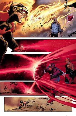 This is when he kills Chuck. Wolverine tries to attack Cyke once more but is burned badly. Cyclops then reveals that he has become the new host for the Dark Phoenix. This paves the way for the showdown for AVX # 12.